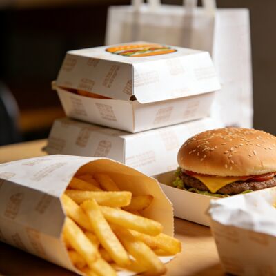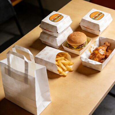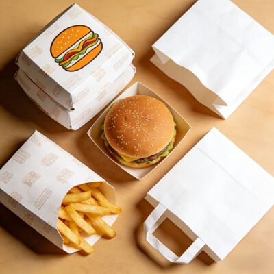 We offer a range of sizes to accommodate various fast food items, from individual-sized burgers to larger meal deals with fries and fried chicken.