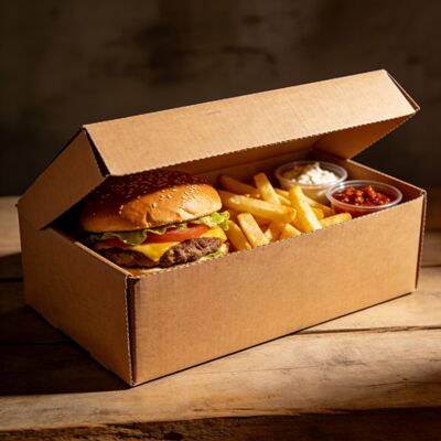 Perfect for Hamburgers and French Fries: Specifically designed to fit burgers, French fries, and other fast food items, these boxes ensure that your food stays fresh, secure, and ready for delivery or takeout. The compartments and sizing options are tailored for a variety of fast food servings.