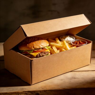 Durable and Leak-Proof: These corrugated kraft paper boxes are designed to hold hot, greasy foods without leaking or falling apart. Their durable construction ensures they can securely package hamburgers, fries, and other fast food items, providing a safe and clean experience for your customers.