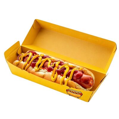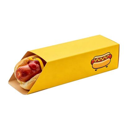 WELM Packaging's customized corn hot dog stick Kraft packaging box is specifically designed for fast food restaurants, fast food chains, and food delivery companies. These boxes are made of high-quality biodegradable food grade paper or kraft paper materials, which have the characteristics of oil and water resistance, and are environmentally friendly, biodegradable, and recyclable. Provides a safe, durable, and environmentally friendly solution for packaging corn hot dogs, hot dog sticks, and other fried snacks.